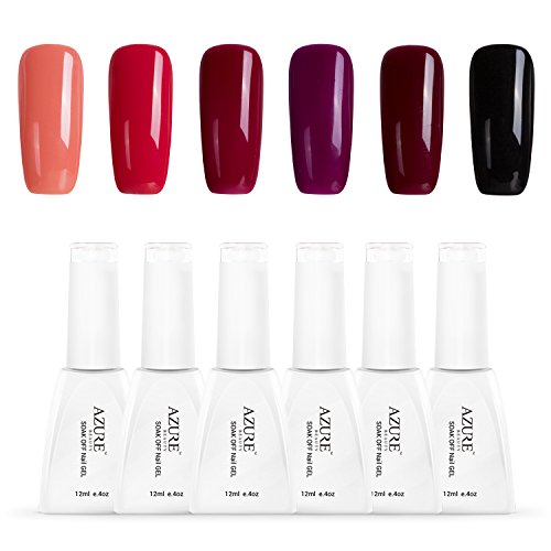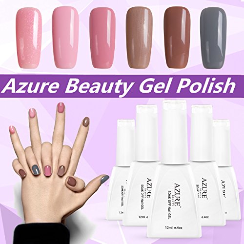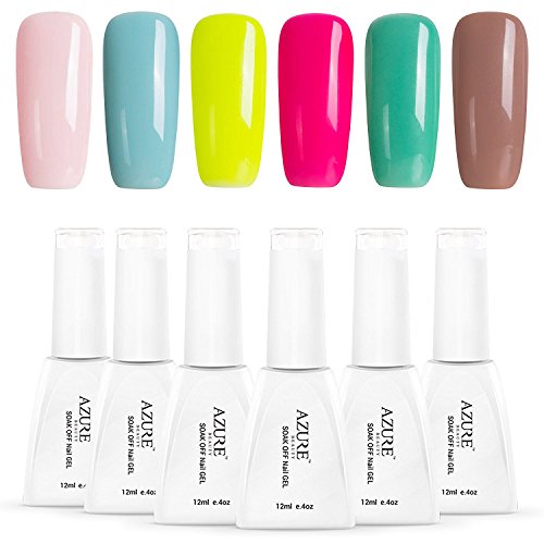 Azure Beauty Set of 6 Colors Soak Off Nail Gel Polish UV LED Shiny Nail Lacquer Manicure Art Set 12ml WSGP19