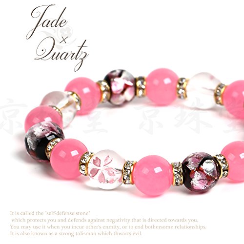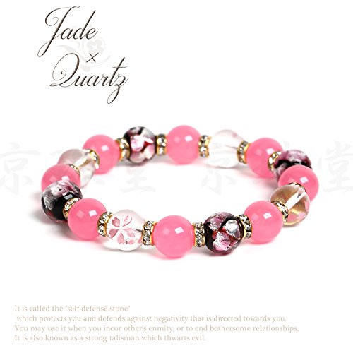 상품명: 【경 주당】AAA 핑크 비취×벚꽃 조각함 수정×잠자리옥 10mm 천연석 팔찌