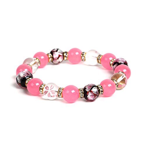 【경 주당】AAA 핑크 비취×벚꽃 조각함 수정×잠자리옥 10mm 천연석 팔찌