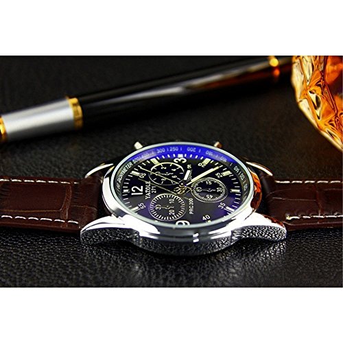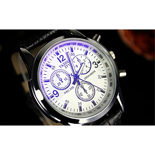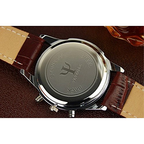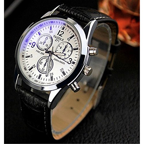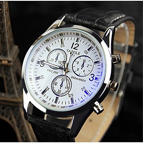 YAZOLE 2 색 맨즈 크로노그래프 손목시계 고급 레더 가죽 벨트 비지니스 워치 심플 슈트 경량 (화이트&블랙)