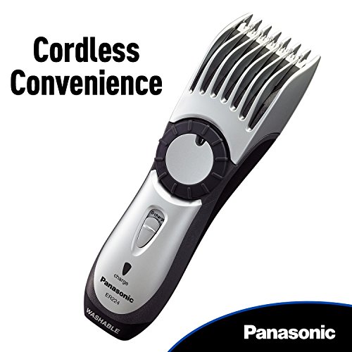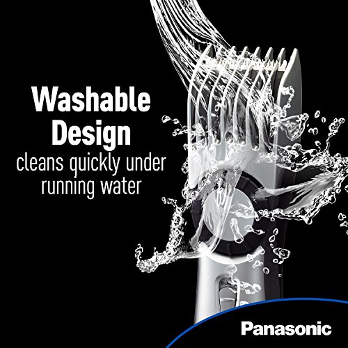 Precision electric, waterproof beard trimmer and hair clipper cleanly and comfortably trims and grooms beards with spring-loaded, Panasonic high-performance stainless steel blades.