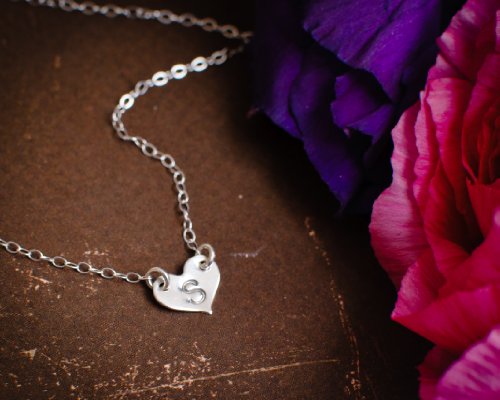 Description: Sterling Silver Dainty Heart Initial Necklace