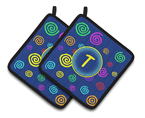 Caroline's Treasures Letter T Initial Monogram - Blue Swirls Pair of Pot Holders CJ1011-TPTHD, 7.5HX7.5W, Multicolor