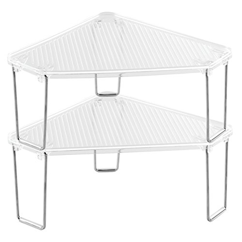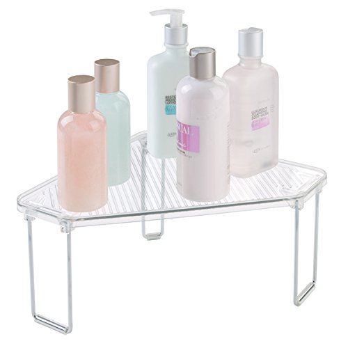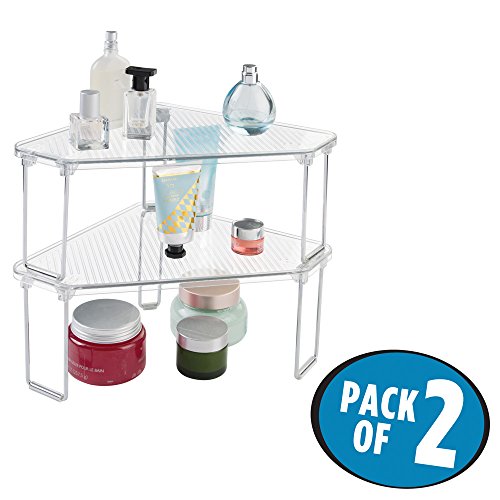 mDesign Free Standing Corner Storage Shelf for Bathroom Vanity Counter Top, Cabinet - Pack of 2, Clear
