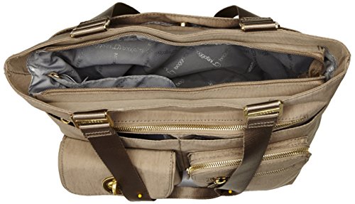 -. Feature : Interior organizational pockets with removable coin purse / Exterior zippered and flap pockets / Back pocket unzips to convert to a sleeve for lage handle / Lightweight water resistant nylon easily wipes clean with a damp cloth / 14.5x12x4 / Pockets: 2 interior slip, 1 interior zip, 7 exterior;Includes additional bag