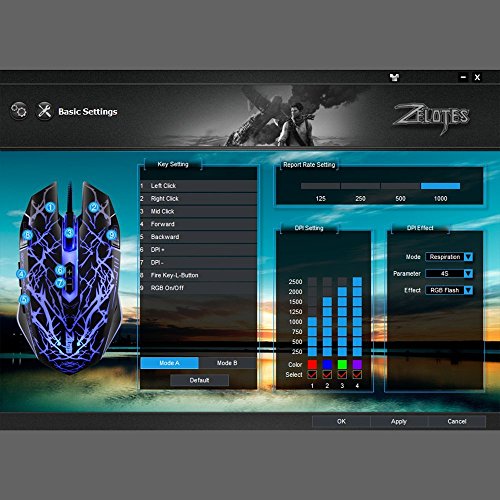 • DPI: 1000-1500-2000-2500, Note: The DPI can adjust to 6000 by CD drive,refer to title 4.8 of the instruction. Easy switching the game to office software
