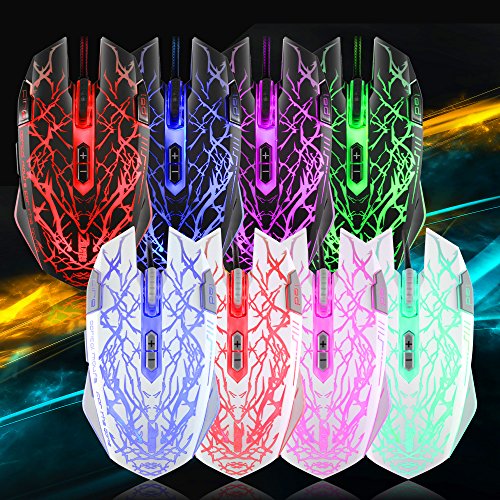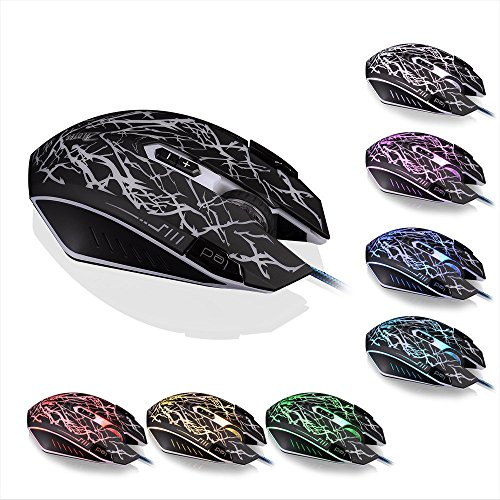 DLAND Gaming Mouse,9 Programmable Buttons, Macro Definition, 2500 DPI,Max. up to 6000DPI by CD Drive, USB Wired LED Laser Gaming Mouse for PC, MMO