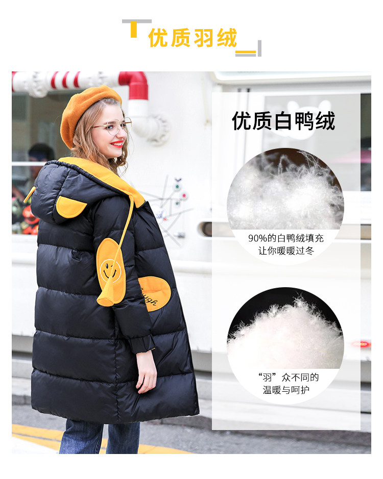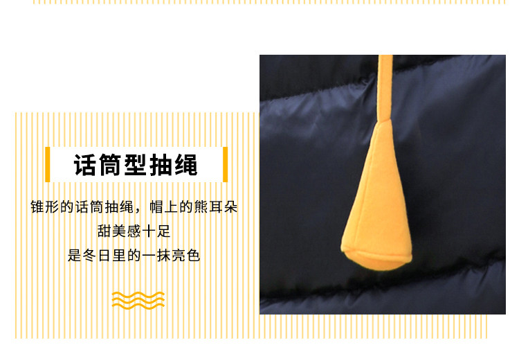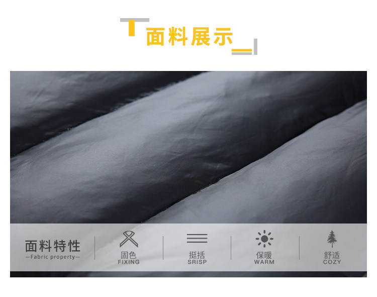| 面料成分: | 聚酯纤维 含绒量:90%白鸭绒 |
