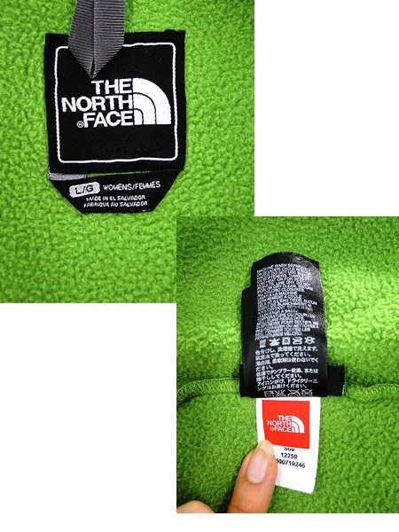 Ladies ブランドTheNorthFace ノースフェイス カラーグレー・緑 メール便不可 コンディション★★★ 素材ポリエステル・ナイロン 表記サイズL スタッフコメント背中真ん中付近に油シミのようなダメージあり。 実寸サイズ 着丈 68・70 cm 身幅 57 cm 肩幅 46 cm 袖丈 65 cm ※ウエスト・ヒップ以外は平置き採寸