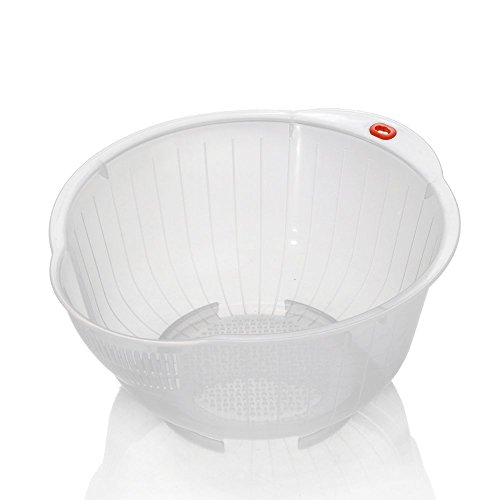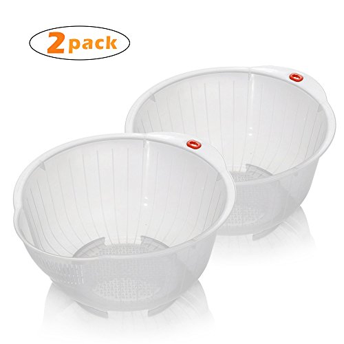 Rice Washing Bowl [2- Pack] with Side and Bottom Drainers,Strainer Basket ,Easy to Use and Clean