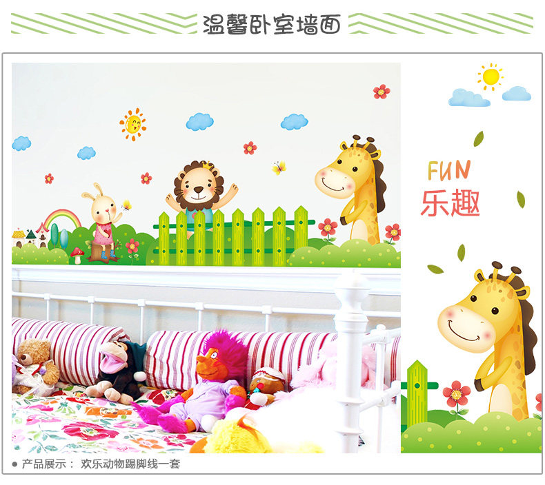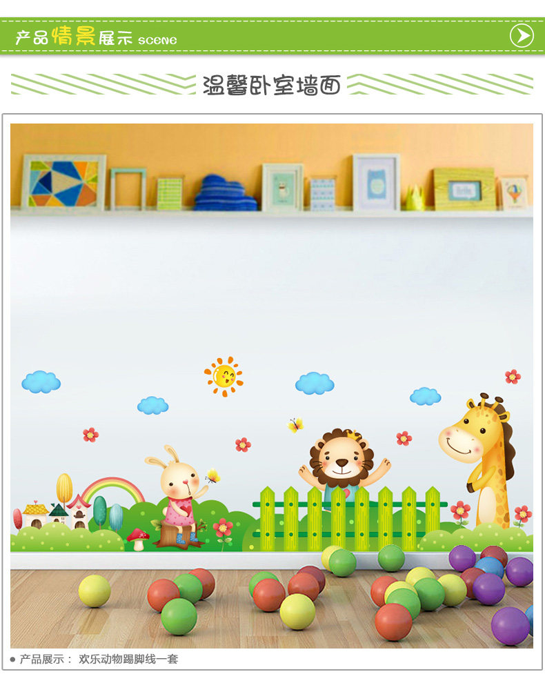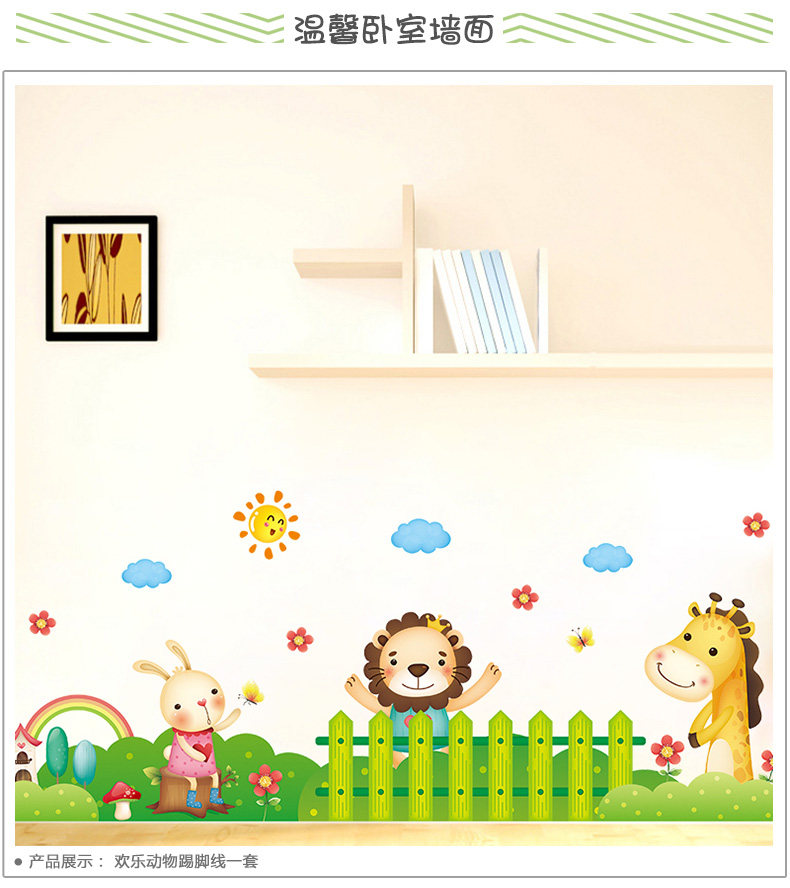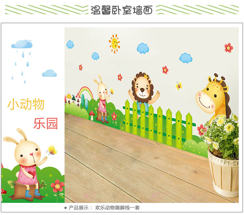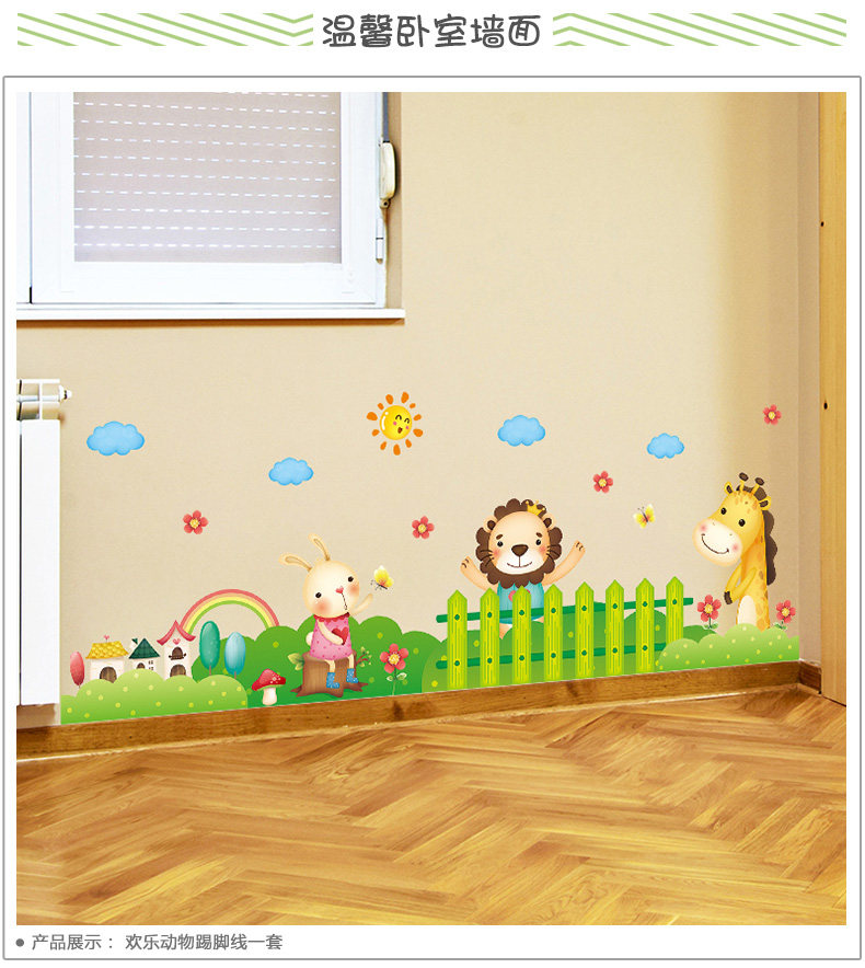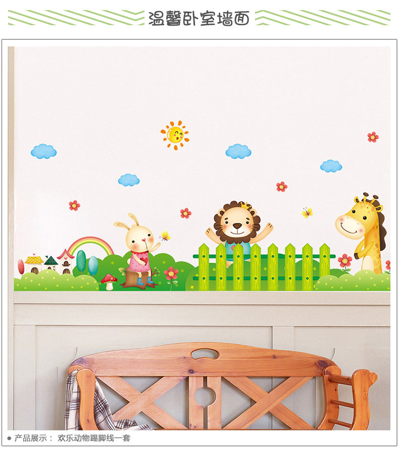 可移除动物贴纸踢脚线墙贴儿童房幼儿园装饰墙角布置贴画墙纸自粘