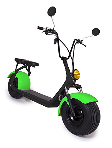-. Feature : Travel in upwards of 27MPH and 25 miles per charge with included battery (75 miles with optional upgrade). You don't pay for gas, no DMV fees, no insurance premiums, street legal. and no license required! (check with your local laws) / Upgrades include: Front Suspension for a smoother ride, Powerful headlight, Super load alarm system with wheel lock, Key-less Remote Start / Electric 1500W Hub Motor, 60 Volt 1 Battery, Twist And Go Throttle. / Steering is kept at a minimum as you lean into your turns. But don't worry, you can stop on a dime, all thanks to the powerful Hydraulic Disc Brake system. / 12 Month Limited Warranty, LED Front Light, Keyed ignition with Digital Gauge