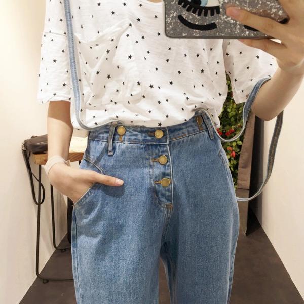 ウエスト部分のボタンがかわいいデニム。紐がついているので、いろんな着こなしを楽しめます☆いつでも活躍してくれること間違いなし!【カラー】ブルー【サイズ】【S】ウエスト66-78/ヒップ96/丈90(cm)【M】ウエスト68-90/ヒップ100/丈91(cm)【L】ウエスト70-82/ヒップ104/丈92(cm)※製品により多少の誤差が生じる場合がございます。【素材】綿・ポリエステル 【ご使用上の注意】着用に問題のない製法のほつれ、商品の性格上、開封された商品・一度でも着用されました商品の返品・交換は一切お受け致しません。イメージと違う、サイズが合わない等の理由での返品は一切受け付けておりません。購入後のサイズ交換は対応しておりません。生産終了後すぐ発送しているため匂いがある場合がございます。ご了承ください。【生産国】made in china※商品はご注文を頂いてから2週間前後の到着となります。