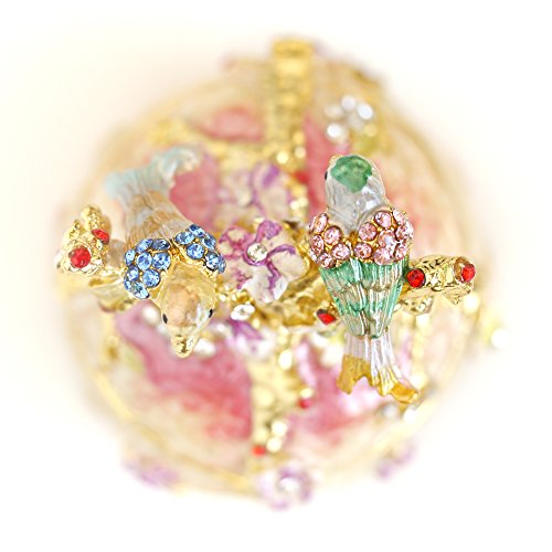-. Binding : Kitchen -. Brand : Apropos -. Color : Pink -. EAN : 0875488004655 -. Feature : New Vintage Style Love Bird comes with Rhinestones and magnetic closure. A lot of detail added to the box. / Material: Dec Metal with detail texture, rhinestones accents and hand-painted colorful enamel finished. / Usage: Perfect for jewelry storage, decoration, collectible and giftable. / Product Dimension: 2 -. IsAutographed : 0 -. Label : Apropos -. Manufacturer : Apropos -. Model : 00465 -. PackageQuantity : 1 -. ProductGroup : Home -. ProductTypeName : HOME -. Publisher : Apropos -. Studio : Apropos -. Title : Rare Hand P.R.Inted Vintage Style Love Bird Colorful Rhinestone Jewerly Trinket Box / Faberge Egg -. UPC : 875488004655