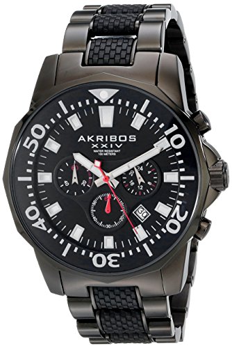 -. Title : Akribos XXIV Men's AK561BK Conqueror Black Stainless Steel Divers Chronograph Watch