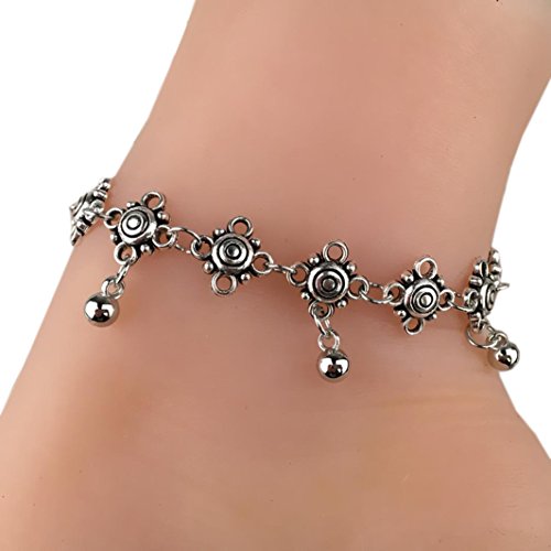 -. Title : Susenstone Retro Style Carved Hhollow Metal Droplets Tassel Anklets