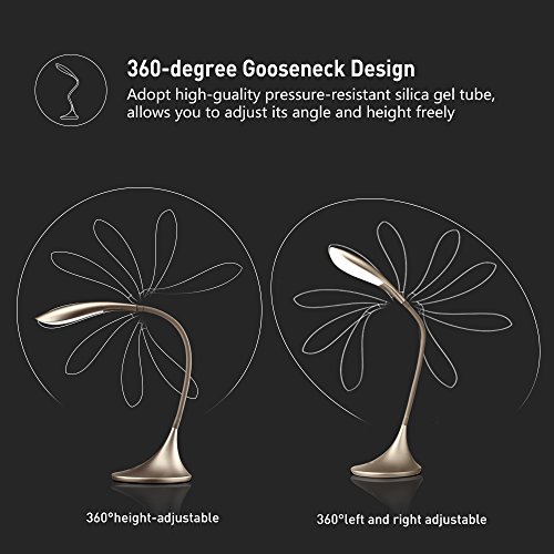 - 360-degree gooseneck design: The gooseneck-shaped led desk lamp arm allows you to adjust its angle and height freely so as to meet your different demands for angles and space (sofa, bedside or desktop)