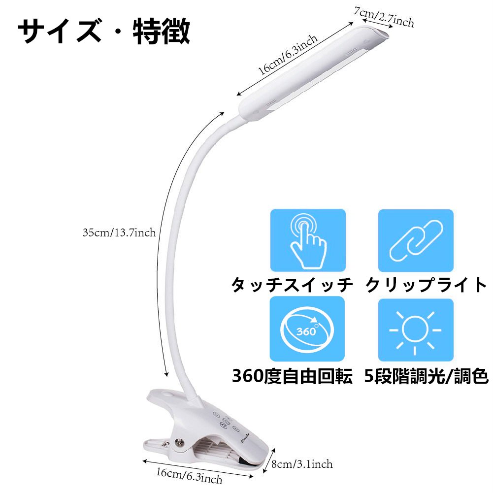 KEDSUM LED clip light 5 step dimming 5 steps tone color illuminance 528 lumen white