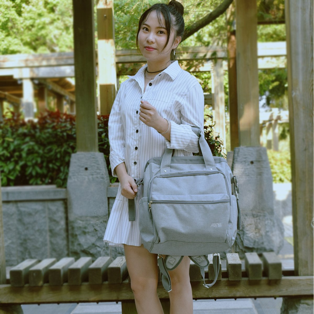 Finished in a size that can accommodate up to the size of baby supplies (clothes change, baby bottle, water bottle, diaper pouch, plush toy), bath towel, makeup pouch, wallet, smartphone, key, ipad tablet, A4 size magazine, laptop computer