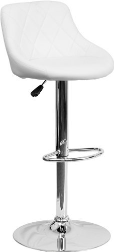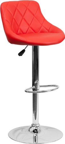 Get a touch of retro charm and lots of comfort with the Flash Furniture Contemporary Bucket Seat Adjustable Bar Stool with Chrome Base. Its quilted vinyl-upholstered bucket-seat design features a mid-back for a comfortable seat. This stool has a swiveling seat with easy gas-lift height adjustment. Its chromed disk base includes a built-in footrest for stylish comfort. A variety of color options make it customized for your home. About Flash Furniture Flash Furniture prides itself on fine furniture delivered fast. The company offers a wide variety of office furniture, whether for home or commercial use. Leather reception seating, executive desks, ergonomic chairs, and conference room furniture are all available to ship within twenty-four hours. High quality at high speeds! Quilted height-adjustable swiveling bucket-seat stool with gas lift. Dimensions: 18.5W x 19D x 33.25-41.75H in.. Seat dimensions: 14 in.. Vinyl upholstered seat and back in a variety of color options. Polished chrome disk base with built-in footrest. Quilted vinyl backrest adds retro charm. Vintage charm with a comfortable twist. Designed for residential use.Feature