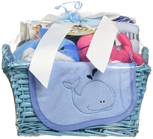 - Feature : It's a whale of a tail and all fishing fun with this great gift basket from the sea / From bath time fun with matching toys, towel and washcloths, to a matching layette set, blanket and more / The reusable blue basket also makes handy storage in your little fishermen's room / Each basket is crafted with attention to detail, shrink wrapped and tied with a bow for presentation, ready for gift giving / To include a personalized message with your order, please mark gift during check out / From bath time fun with matching toys, towel and washcloths, to a matching layette set, blanket and more!