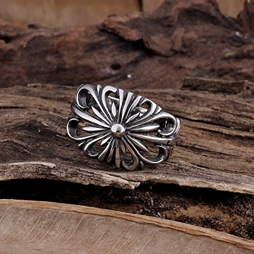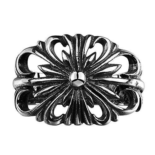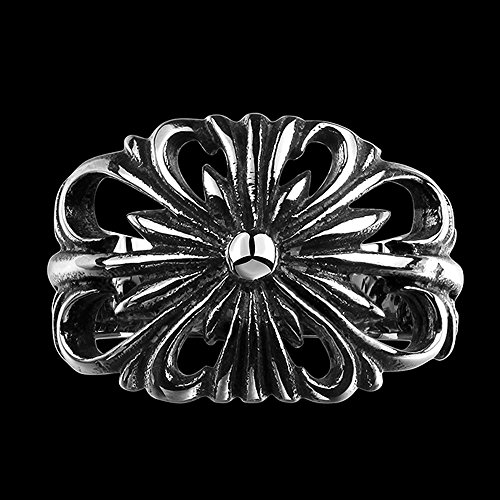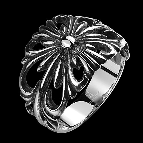 -. Title : TIDOO Jewelry Punk Series Mens Vintage Gothic Biker Ring Chrome Hearts Style Antique Black Silver 316L Stainless Steel Wide Cast Rock Finger Band