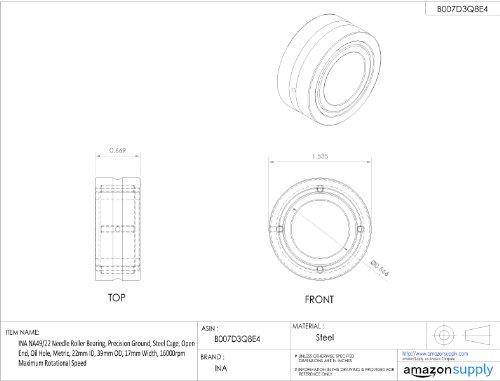 INA NA49/22 Needle Roller Bearing, Precision Ground, Steel Cage, Open End, Oil Hole, Metric, 22mm ID, 39mm OD, 17mm Width, 16000rpm Maximum Rotational Speed