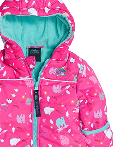 About our super cozy baby buntings: Molehill's bunting suits will keep your baby warm and comfortable. The micro rip-stop polyester exteriors give the needed toughness. Fleece lining to keep them cozy and warm. Fold over hands and feet eliminate the need for mittens and booties on quick trips. Zippered front with reinforced zipper flap at neck to protect their delicate skin. Molehill logo at left chest. These down suits for infants and toddlers girls and boys are available in sizes 3 months, 6 months, 9 months, 12 months, 18 months and 24 months.