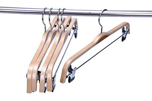 -. Binding : Kitchen -. Brand : CA&HomeDecor -. Color : Natural -. EAN : 0707948176704 -. Feature : Making Closet Storage effective with these space save pant hangers. Polished chrome swivel hooks, 360 degrees / Light and solid wood with natural finish and unique design for both men pants and women pants / Two adjustable PVC coating clips have soft felt lining to safely grip even delicate garment / Natural finished, smoothly, be an elegant decor to your wardrobe / Perfect design to keep your trousers and pants in natural shape -. IsAutographed : 0 -. Label : CA&HomeDecor -. Manufacturer : CA&HomeDecor -. MPN : B01M09CYNY -. PartNumber : B01M09CYNY -. ProductGroup : Home -. ProductTypeName : HOME -. Publisher : CA&HomeDecor -. Studio : CA&HomeDecor -. Title : CA&HomeDecor Natural Finish Wooden Pant Hangers with Anti-rust Hook and 2-adjustable Clips, 5 Pack -. UPC : 707948176704