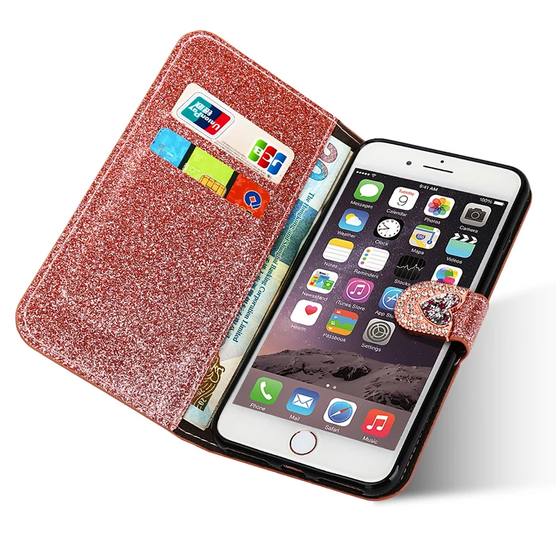 Features:Bling Leather Flip Wallet Phone Case