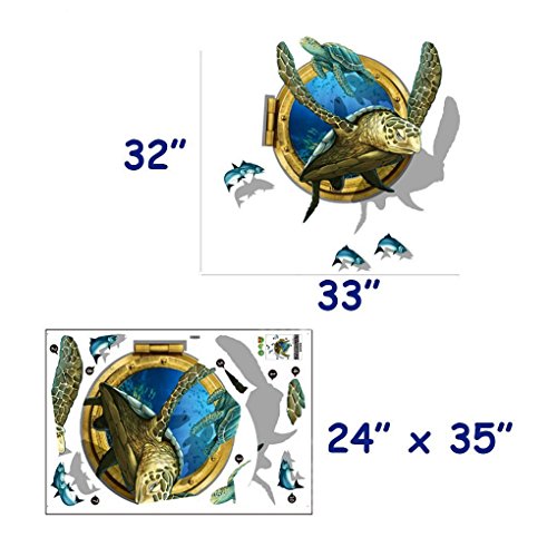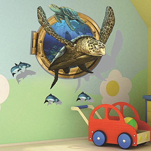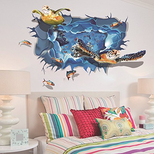 -. Title : Amaonm® Removable home Art Decor 3D Turtle Swimming Under Ocean Sea Fake Window Wall Sticker Mural Waterproof Decals for Kids Girls Bedroom Living Room Nursery Rooms Classroom Background