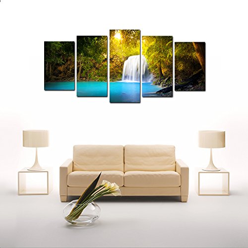 -. Title : KuyiArt- 5 Panels Canvas Wall Art,Lake,Stretched Art P.R.Ints for Wall Decoration, Framed Giclee P.R.Ints, Ready to Hang