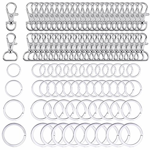 Different Size and Quality: Comes with 25 pcs D lobster claw clasps, 25 pcs semi-circle lobster claw clasps, 15 pcs 3/ 4" key rings, 15 pcs 1" key rings, 10 pcs 1-1/5" key rings, 10 pcs 1-2/5" key rings
