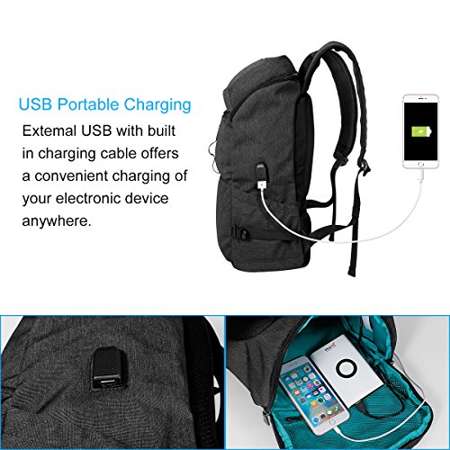 -. Feature : ✓ TOP QUALITY WATER RESISTANT LAPTOP BACKPACK - Our Laptop Backpack is made of strong water resistant oxford material, ultra-durable and Eco-friendly. The interior lining is water-resistant polyester to keep your items dry and there is a honeycomb mesh sponge, breathable back pad and padded shoulder straps forming a suspension system for maximum support and ventilation. / ✓ EASY TO ORGANIZE YOUR BELONGS - 1 Main compartment, 1 Top zippered pocket, 2 front zippered pockets, 2 side pockets, 1 anti-theft zippered pocket for the valuables on the back, 1 laptop sleeve, 1 flat sandwich, 3 inner pockets and 3 pen loops, provides a separated space for your Laptop, tablet, textbooks, magazines, iPhone, iPad, pen, keys, wallet, books, clothes, bottle and more. / ✓ EXTRA SAFE WITH USB PORT - Our reinforced zipper pocket increases the safety and allows you to secure your bag with a padlock if you want to. It also has a USB charging port so you can easy and quick charge any of your devices so your gadgets will never run out of battery. / ✓ SIZE - This Laptop Backpack measures 11.5"L x 18.5"H x 7.5"W. It can hold up to 15.6 Inch Laptop with dedicated Laptop sleeve in main compartment against from bumps and falls. / ✓ PERFECT FOR MANY OCCASIONS - It is very attractive and perfect for college, school, business, travel, short hiking, camping and outdoor activities.
