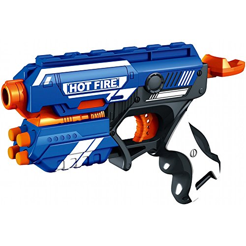 -. Binding : Toy -. Brand : SadoToys -. Color : Blue,Orange -. EAN : 6953521700468 -. Feature : Size: Standard / Gun is 9" long / Load and fire one dart at a time / Store 4 spare darts below gun barrel / For ages 6+ -. IsAdultProduct : 0 -. Label : SadoToys -. Manufacturer : SadoToys -. Model : 7036 -. MPN : 7036 -. PackageQuantity : 1 -. PartNumber : 7036 -. ProductGroup : Toy -. ProductTypeName : TOYS_AND_GAMES -. Publisher : SadoToys -. Size : Standard -. Studio : SadoToys -. Title : Blaze Storm Foam Bullet Blaster Hand Gun, Long Distance Shoot Range of up to 80 feet