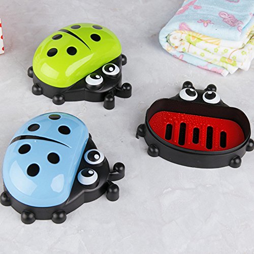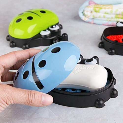 -. Feature : Color: red, yellow, green, blue / Size: 5.1 × 4.7 × 1.9 inches (L × W × H) / Material and packaging: 1 x soap box. Using high-quality PP material, durable. / Design features: cartoon ladybug shape, the appearance of lovely and interesting. With lid design, effective dust and anti-bacterial. Up and down double-layer design, play a role in the drain, keep the soap dry. / Applicable: can be placed in the bathroom, washout or kitchen in full bloom soap, sponge, steel brush, etc., easy to use. When traveling outdoors, it is easy to carry, good leakproof performance, very practical!