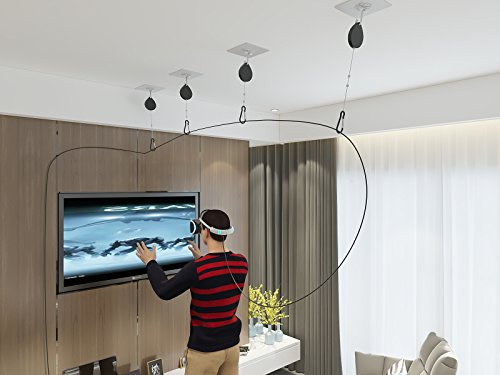 -. Feature : Move Freely & Without Cables Tripping you Up While You're in Your Game / Must Have for Virtual Reality Headsets such as the Oculus Rift, Playstation, and HTC VIVE VR Headsets / Cable Management System Includes Everything Needed and More with 8 x Retractable lines and Adjusting tools, 8 x Adhesive Hooks and 8 x Carabiners: / Installs quickly to any flat surface using Adhesive Pads for mess and drill free installations / Say Good Bye to Messy Cables Interfering With Your Game Play
