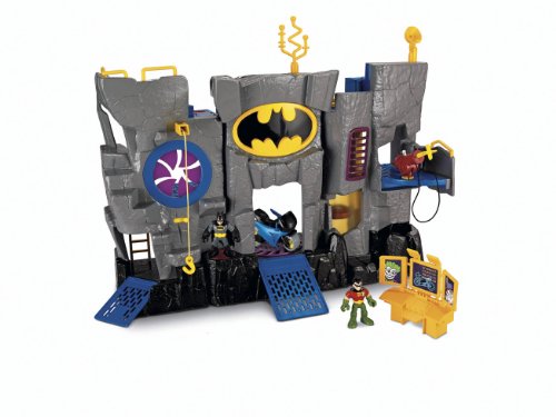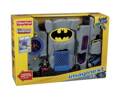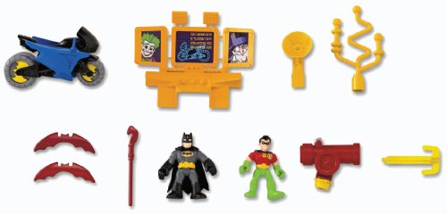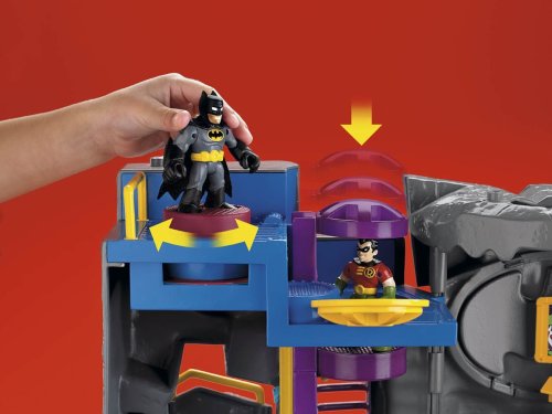 Imaginext Adventures unlock a new adventure every time you play. Imagine... a call comes in from the Commissioner. The Joker is playing tricks again that just aren't funny. Once again, it's time for Batman to take action. Batman takes the elevator to the main floor of the Bat Cave, where Robin has already lowered the drawbridge at the entrance. Holy grappling hooks! The Penguin is right outside! Batman must head for the side door to make a quick exit on the Bat Cycle. Playset includes Batman and Robin figures. Add to the adventure with additional Super Friends figures, sold separately. Playset measures 21"L x 6"W x 16"H.Feature