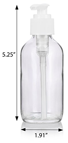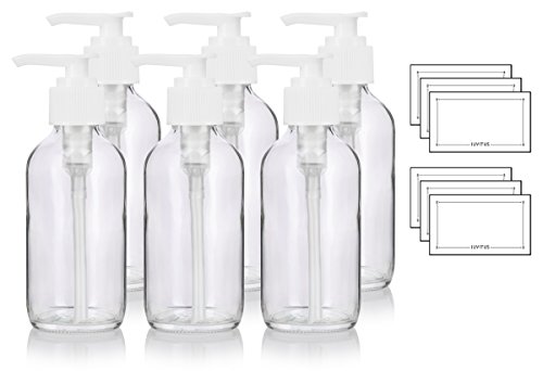 Clear Glass Boston Round White Lotion Pump Bottle - 4 oz (6 Pack) + Labels