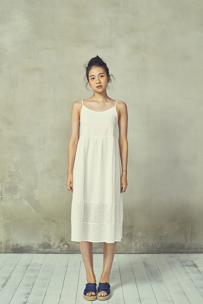 순수 그 자체를 자아내는 화이트 코튼 원피스.