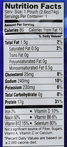 Albacore’s mild flavor and firmer texture, hand packed in StarKist’s Flavor Fresh Pouch, makes it a great option for salads, pasta dishes or as a substitute for chicken in your favorite recipe. Because no draining is required, you can even eat it right out of the pouch! Delicious-tasting tuna you can really tear into!Feature
