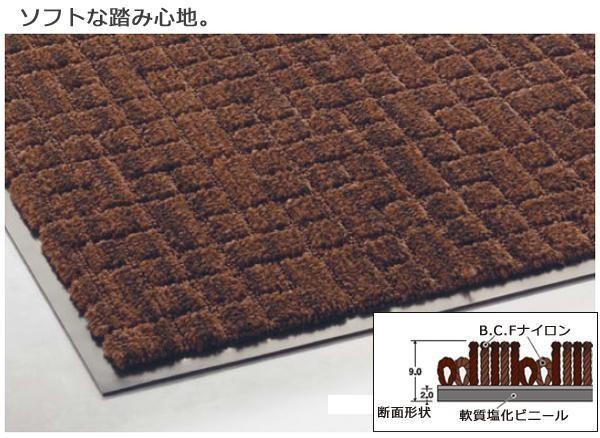 | 1m2あたり約4.7Lという抜群の吸水力と高い速乾性能を持ち、人の往来が多い施設にも最適な吸水マットです。ソフトな踏み心地に加え、強力な吸水力と除塵力で足元の汚れをしっかり落とします。カットパイルとループパイルを混在させ、微細な塵やホコリもキャッチし靴底の汚れをフロアーに持ち込むのを防ぎます。 |