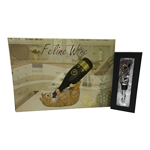 -. Feature : 2 Piece Set - Cat Figurine Wine Bottle Holder & Cat Wine Bottle Stopper / Perfect Gift for that Special "Cat" in your life / Hand Crafted Cat Figurine Wine Bottle Holder / Stunning Rhinestone Cat Wine Bottle Stopper / Perfect For Indoor Decoration: Restaurant Cabinet Bar Kitchen Etc.