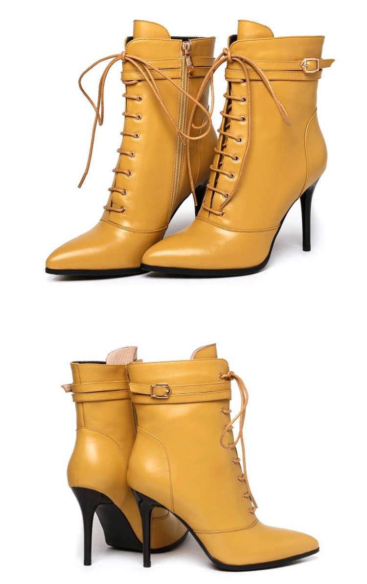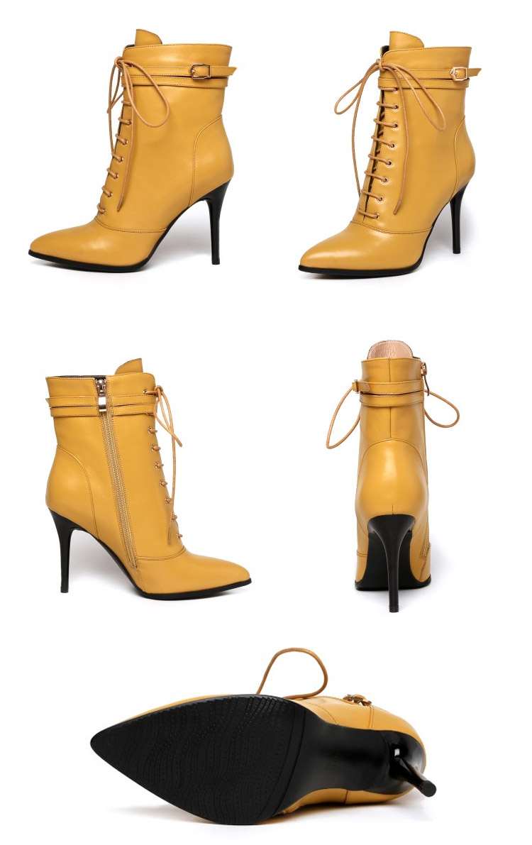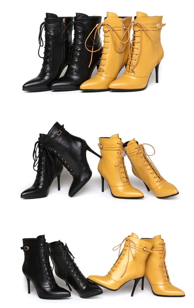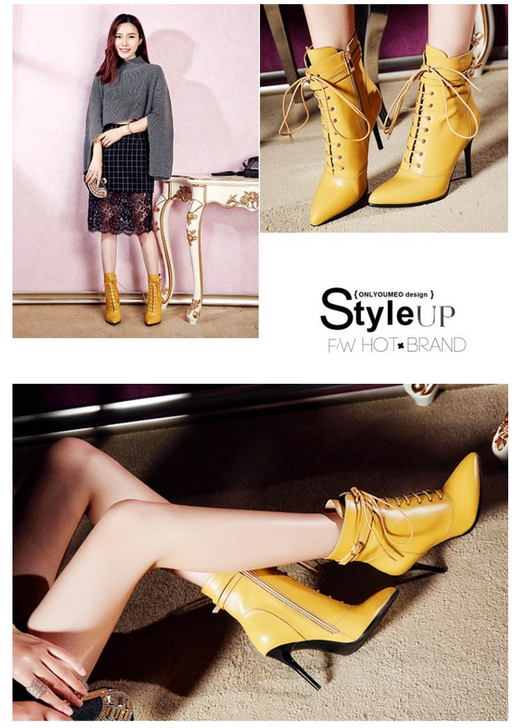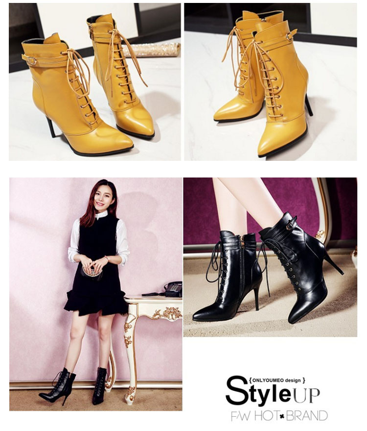 | 海外でも人気沸騰中のアイテム!ピンヒールのレースアップブーツショートブーツ新登場♪編みあげ靴なのに、靴紐をほどいたり結んだりせずに、楽に脱ぎ履きできます。 | |