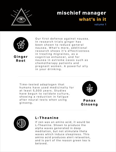 -. Title : Mischief Manager: Hangover Remedy & Prevention Supplement Pills with Liver Detox & Support | Adaptogens and Nootropics - contains Milk Thistle, L-Theanine, Ginger, Panax Ginseng, Ashwagandha