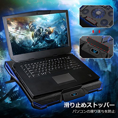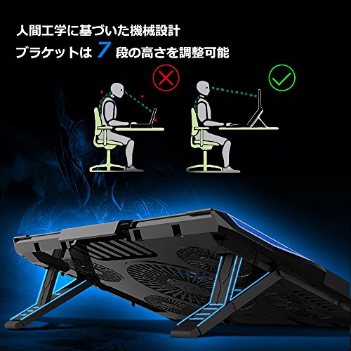 5段角度調節できるので、好みの高さを調節することができ、良い姿勢を保ったまま操作が可能です。冷却台の底部にスリップ防止板が付き、底部から外してから、冷却台の下の溝に差し込み、ちゃんとノートパソコンを守ります。