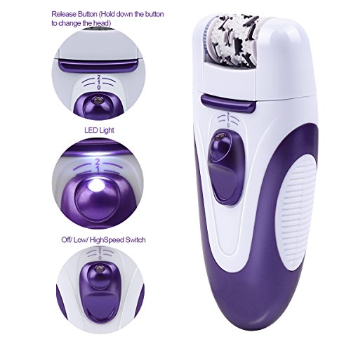 Studio : Totoose Publisher : Totoose Binding : Misc. Product Description Are you shamed in front of people due to ugly unwanted hair? This 4 in 1 Epilator, Shaver and Callus Remover kit help you remove hair effectively. Provide top personal care for you. Why choose our epilator set: ●Optional 2-speed mode to fit your individual demand for men and women. Speed 1 for extra gentle epilation and speed 2 for high efficiency epilation. Designed for regular skin and sensitive skin. ●With accurate 24 wider tweezers technique to remove hair. Fully recharge allows epilate for up to 40 min. EPILATOR : remove hair efficiently and easily from legs, arms by pulling the hair from root SHAVER : provide a comfortable and gentle way to hair remover on armpit, upper lip, chin etc. CALLUS REMOVER : with exquisite pumice stone rollers to remove callus and dry rough skin on feet gently and quickly. Comes with a free replacement (2 callus remover head at total) How to use: 1.Wipe skin with hot towel before epilation to reduce some uncomfortable sensation of pulling hair. Better to epilate after a shower to open skin pores. 2.Hold the epilator at 90° on skin and Move the epilator lightly.
