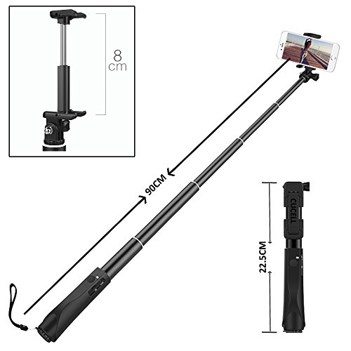 Cucell® Bluetooth Remote Monopod Extendable Selfie Stick for iPhone 6S, 6, iPhone 5S, Samsung S6 S5, Android and IOS System(Black)