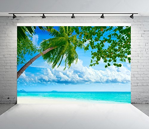 10x6.5ft Blue Sea Backgrounds Blue Sky White Cloud Coconut Trees Photo Backdrops Nature Scenery Backdrop