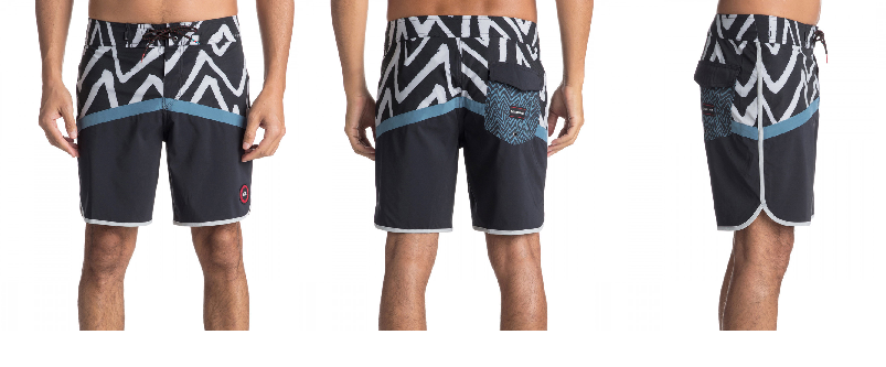 | Repreve™ 재활용 소재로 드라이플라이트 소수성 발수처리 된 17인치 무릎 위 기장의 보드숏. 웰딩 지퍼포켓 안에 Key bunge cord가 있다. | |